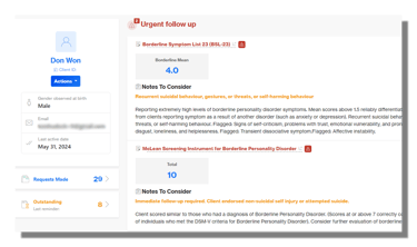 Automated scoring and interpretations: Reduce report writing time and gain research-backed insights from standardized questionnaires.