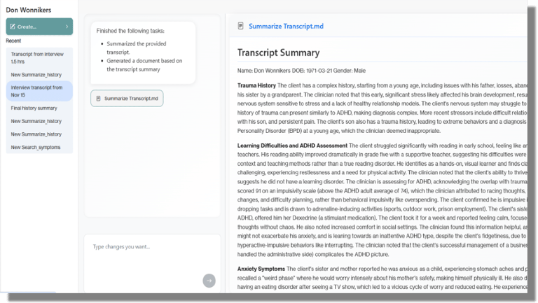 Summarize interview conversations with Sasha's built-in clinical rules that filter content based on what's important to clinicians.